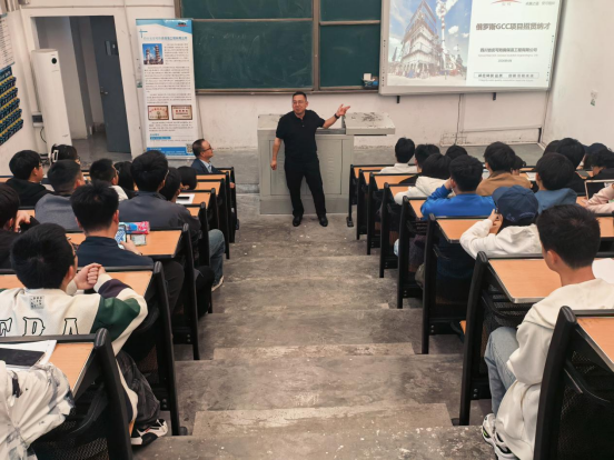 宣讲现场,安可公司人事经理杨琴通过PPT演示,全面介绍了公司的发展概况。作为国家一级防腐、防水、保温施工企业,安可公司深耕行业二十余年,是西南地区防腐保温防渗行业中唯一获得“中国诚信品牌企业”称号的专业化企业,长期与中石油、中国化学集团等国内外知名企业合作,承接了多项国内外大中型重点项目,业务覆盖石油、化工、冶金、电力等多个领域,技术实力与行业口碑备受认可。宣讲中,公司还展示了核心资质证书、俄罗斯GCC项目等业务板块,详细解读了招聘岗位需求、职业发展路径及薪酬福利体系。