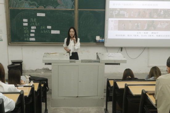 比赛中,选手们围绕美术学科核心内容展开教学展示,选题涵盖西方古典绘画、陶艺制作、中国山水画、门神文化、城市公共雕塑、灯笼艺术等多个领域。授课过程中,参赛选手巧妙运用视频演示、现场实操、趣味提问、小组讨论等多种教学手段,将专业知识与教学技巧有机融合,展现出扎实的学科素养与灵活的教学应变能力。
