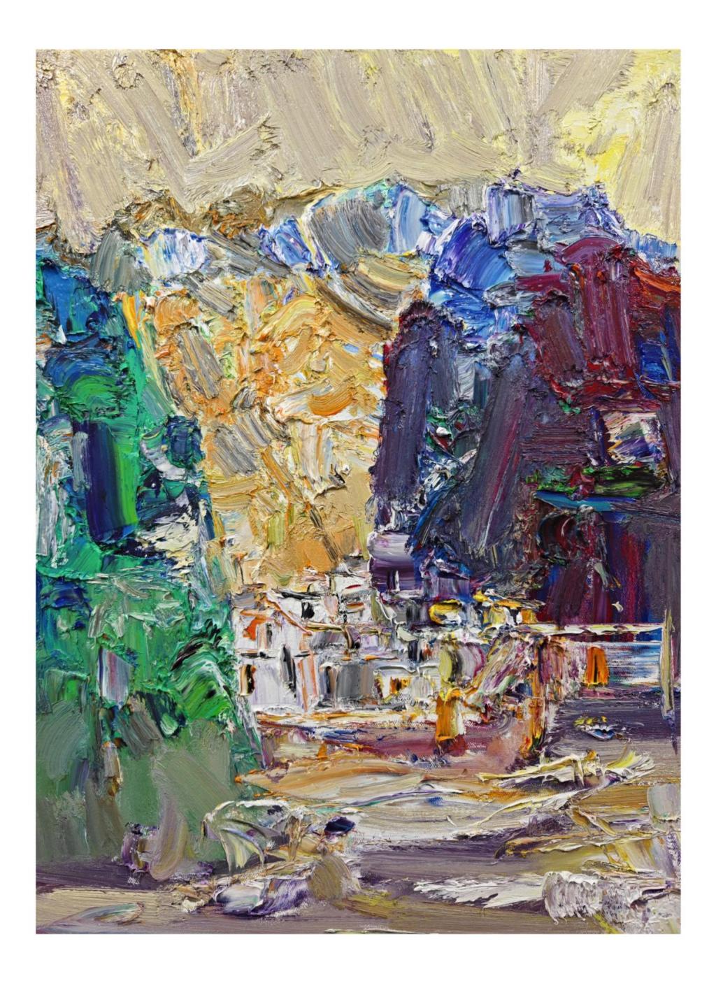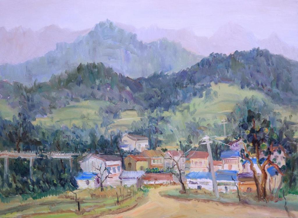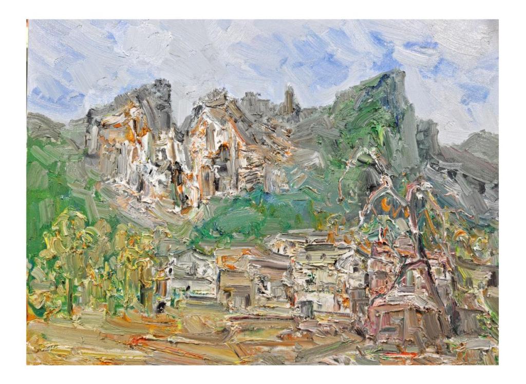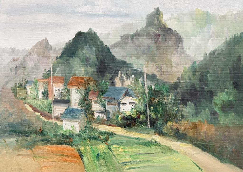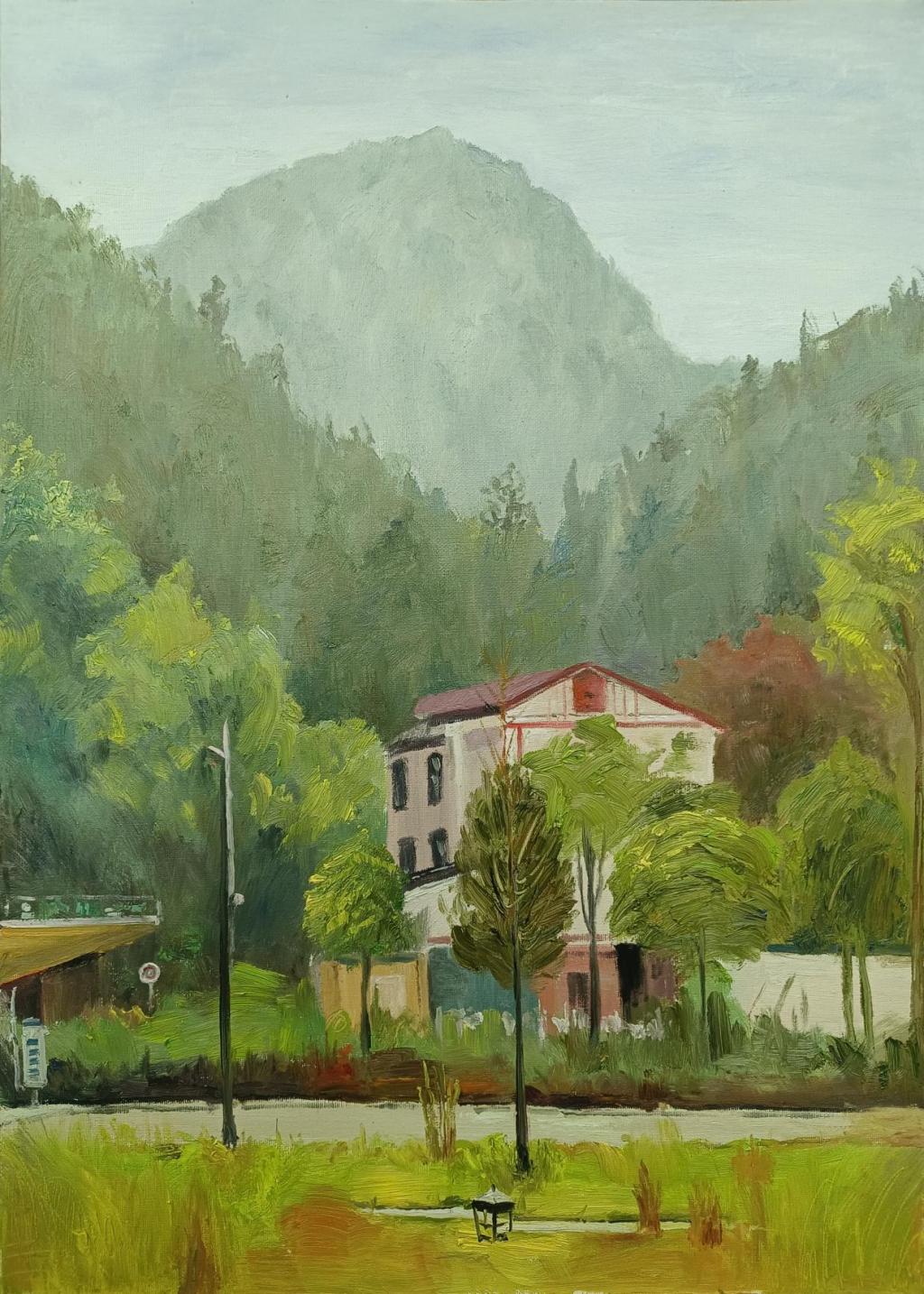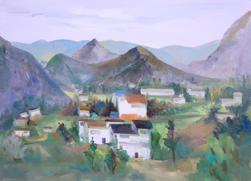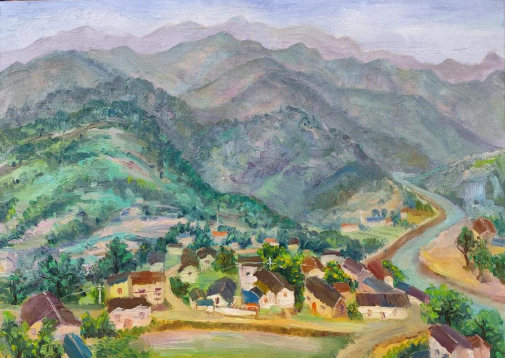 《八台麓畔,翠影人家》 布面油画 70*50cm 易慧琳