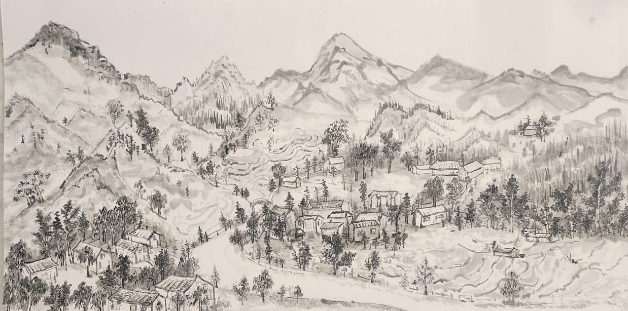 《八台峰峦村居图》 纸本水墨 33*65cm 刘杨