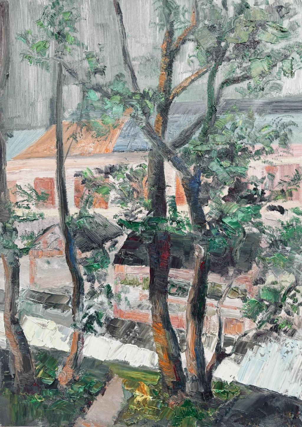 《龙潭岸的树影人家》 布面油画 70*50cm 刘鸿程