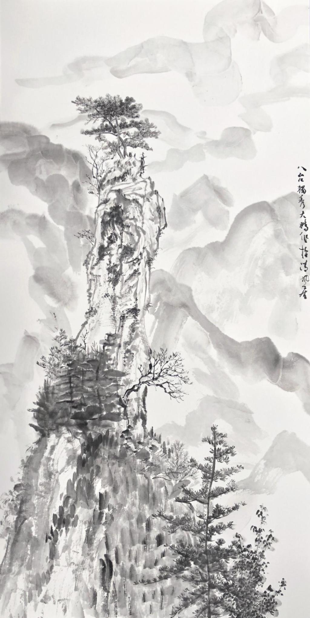 《八台独秀》 纸本水墨 65*33cm 龙大鹏