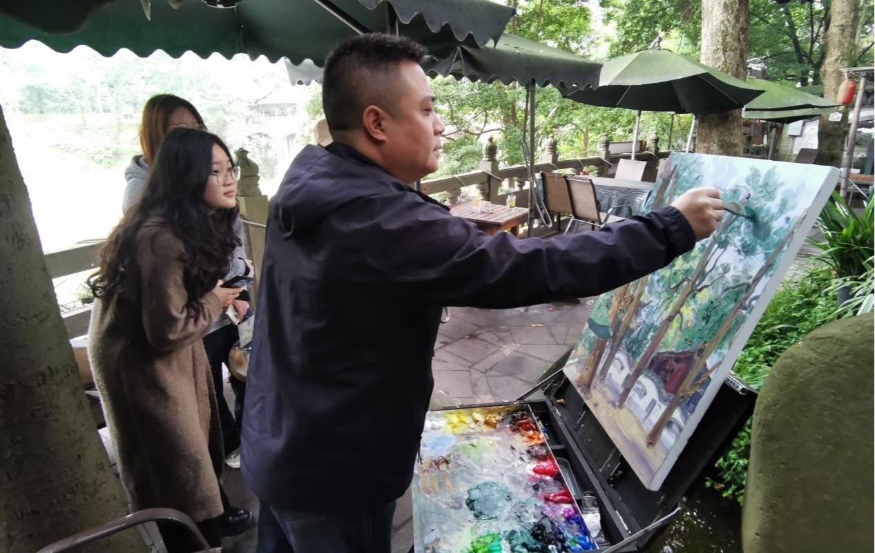 此次写生采风活动是我校艺术实践教学的重要一环。它不仅有效提升了学生的综合艺术素养与审美能力,更在共同的创作与生活中,让同学们收获了比作品更为珍贵的师生情与同窗谊。同学们三个一组、五个一群地散布于各个角落,一簇簇花架、一张张调色板为古镇增添了一道道靓丽的风景。同学们专注写生的身影还吸引住了珠海格力电器股份有限公司董事长董明珠女生驻足欣赏。我们期待,同学们能将此行的感悟与收获,转化为未来学习创作中更加绚烂的艺术篇章。