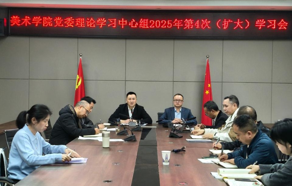 2025年11月6日下午,美术学院党委理论学习中心组在艺术传媒大楼1012会议室组织召开(扩大)学习会,专题学习党的二十届四中全会精神。党委书记张吉应主持学习会。
