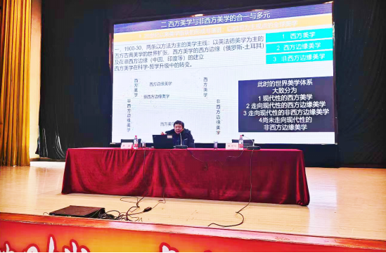 张法教授指出世界美学在20世纪演进涵盖了五方面的内容:一是20世纪西方美学与非西方美学的双重演进。20世界美学史在建立美的本质与否定美的本质,审美非功利性与审美的功利性,艺术与文化关联和艺术与生活关联,20世纪初的双向演进形成“差异-矛盾-张力-互动”的美学情景,在20世纪末进入“重置-再思-新拼-融合”的局面,把中国美学的现代演进与各西方文化美学的现代演进共会一个多声部的美学交响曲。二是西方美学与非西方美学的合一与多元。这一阶段有两个特征:第一,20世纪以来美学版块的形成与演进:以时间为主视点的全球美学。第二,西方-苏俄-中国-印度-伊斯兰-拉美-非洲美学的互动图景:以地理为主视点的全球美学。全球美学是一个世界体系,每一种地理-文化型美学,都是一个动态的能量极场,其中西方美学占有主最多和最强的能量场,从而居于全球美学的主导地位。而西方主导的美学在电型科技(电视-电脑-手机-人工智能)的全球化和新神话理论(重视各文化的从原始时代开始的文化基因)与各地理-文化美学的互动,形成了一种新的全球美学景观。三是多元世界美学演进中的理论问题。其内容包含了五个方面:1.无的本体与有的多元美的共性与文化性的关系。2.西方美学在科学与哲学的升级中呈现为新的与中国-印度观念相契的面貌。3.从现代画家的画中可见其彰显出“虚”体现了虚实结构。4.从现代画家的画中可见其彰显出“时间”体现了时空一体结构。5.中国美学在世界体系中的演进。中国美学在走向现代化的进程中首先是向西方古典和俄苏美学然后是走向西方现代美学。6.印度美学在世界体系中的演进。印度美学在走向现代化的进程中一方面学习西方古典美学另方面学习西方现代美学呈现出多种多样的美学新貌。四是由西方美学引领的世界美学的基本面貌。以西方美学引领的世界美学的一分为三:现代批判-美好生活-神话梦核。作为西方美学主潮的特征是:其一,二分世界中的批判美学。其二,认同现实,享受美好生活的大众美学。其三,以神话-科幻-梦核为题材。其四,神话-科幻-梦核体现为非西方的多元传统与现代纠缠。总之,不同文化面对自原始时代以来的传统,以及这些传统在后来各时代的提升,对有各自的路径,但对于后艺术时代的艺术创新来讲,都是在世界体系的思维框架中进行的,西方艺术在面对非西方艺术的内容和特点时,同样是按照世界体系的方式去思考。五是世界美学体系的共性问题:电型美学-人工智能-后人类美学。围绕这一论题,张法老师阐述从三个方面阐述了这一论题:1.图像生成与虚幻世界的普遍化引出的美学问题;2.人人“成为”文艺家的真幻现实及对文艺的影响;3.人工智能升级后:科幻艺术的后人类景观。
