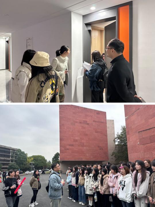 此次考察以“传统空间转译与现代设计创新”为核心主题,精心设计了专业场馆研学、古典园林解构、企业实践对接,每一站都成为学生汲取知识、提升能力的“实践课堂”。在杭州之江文化中心,学生们不再是通过图片和文字了解大型文化综合体,而是实地走进场馆内部,用手机和摄像头详细记录场馆内“传统纹样现代运用”、“公共空间人性化细节”等关键要点,沿着空间流线细致观察功能分区、采光设计与文化氛围营造的巧妙结合,深刻理解了“空间服务于人”的设计理念。