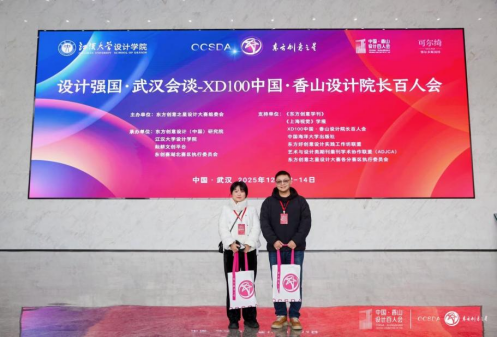 12月12至14日,四川文理学院美术学院设计教研室主任及党支部书记况燧媛老师、绘画教研室党支部书记谢鑫辉老师受邀参加了在武汉举办的“第六届东方创意之星设计大赛颁奖典礼系列活动”及“中国·香山设计院长百人会(XD100)武汉会谈系列活动”。本次活动由工业和信息化部、东方创意之星设计大赛组委会主办,东方创意设计(中国)研究院、江汉大学设计学院等单位联合承办,旨在推动设计教育与产业融合,构建“政产学研用刊”协同的创新生态。