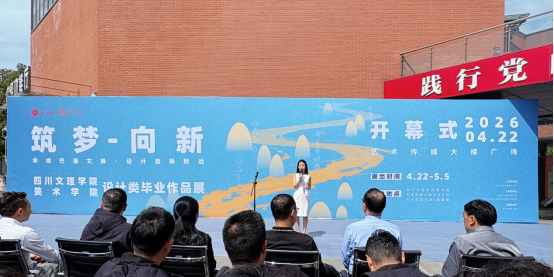 4月22日下午,“筑梦·向新”——四川文理学院美术学院2026届设计类毕业作品展在学校艺术传媒大楼前隆重开幕。本次展览集中展示了学院2026届设计类毕业生的优秀创作成果,全面呈现了青年学子的艺术素养、创新思维与实践能力。